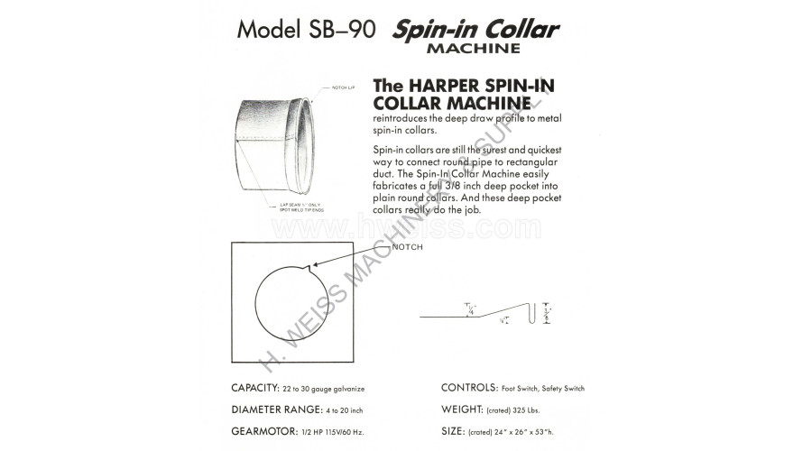 Harper Model SB-90 - 3/8" Deep Pocket Spin-In Collar Machine