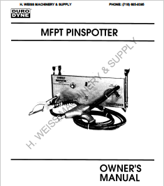 Pinspotters have many components, from gun cables to weld tips and weld activators, that may need to be replaced due to standard wear. At H. Weiss Machinery, we have a variety of replacement parts available for the Duro Dyne MFPT Pinspotter